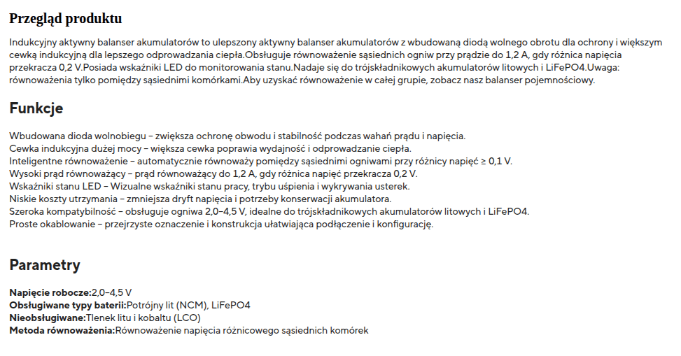 Wcześniej kupiłem trzy balansery tego rodzaju ale dla trzech ogniw połączonych szeregowo.