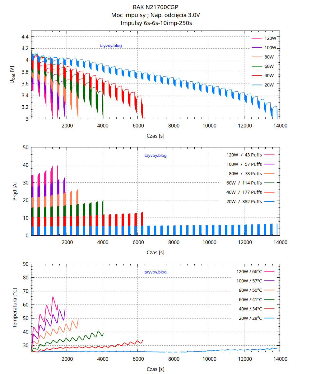 | P [W] | Puffs | Q [mAh] | E [Wh] | Im [A] | Tm [°C] |