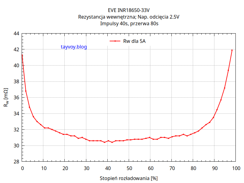 Rezystancja wewnętrzna dla prądu stałego - ~31mΩ.