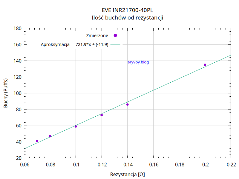 Poniżej wykres pokazujący, że zależność ilości buchów od rezystancji grzałki jest proporcjonalna.