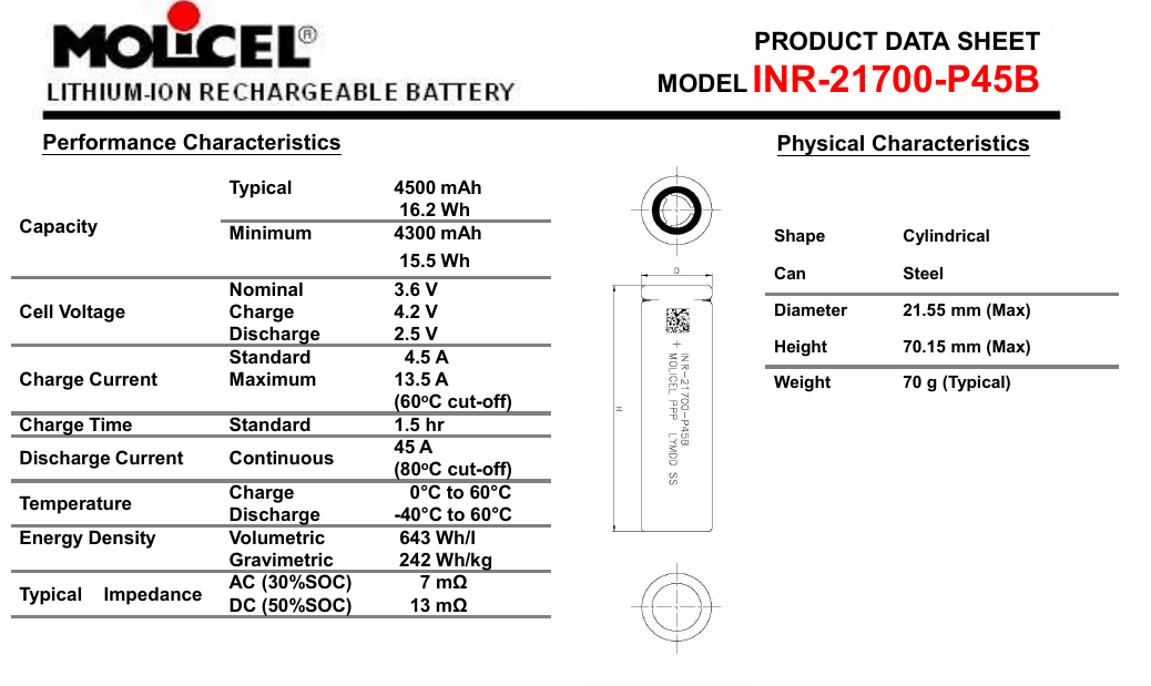 Link do dokumentacji Molicel INR21700-P45B.pdf.