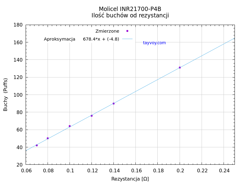 Poniżej wykres pokazujący, że zależność ilości buchów od rezystancji grzałki jest proporcjonalna.