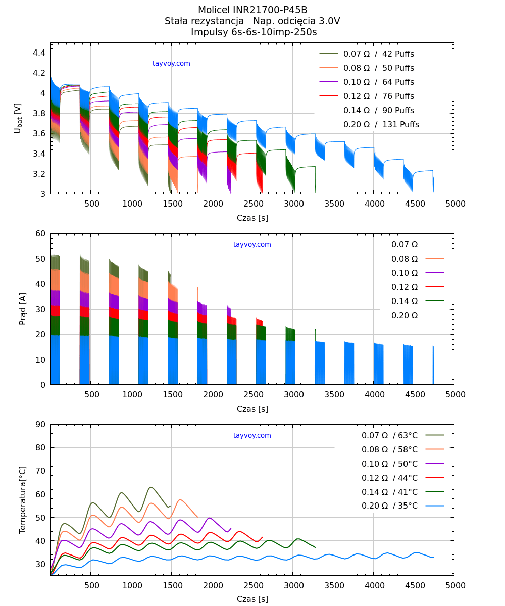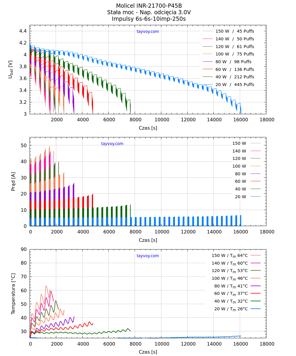 | P [W] | Puffs | Q [mAh] | E [Wh] | Im [A] | Tm [°C] |