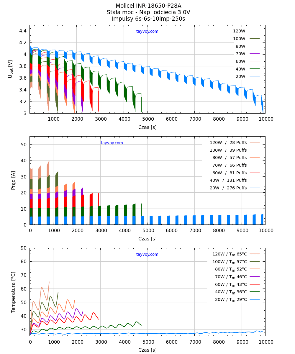 | P [W] | Puffs | Q [mAh] | E [Wh] | Im [A] | Tm [°C] |