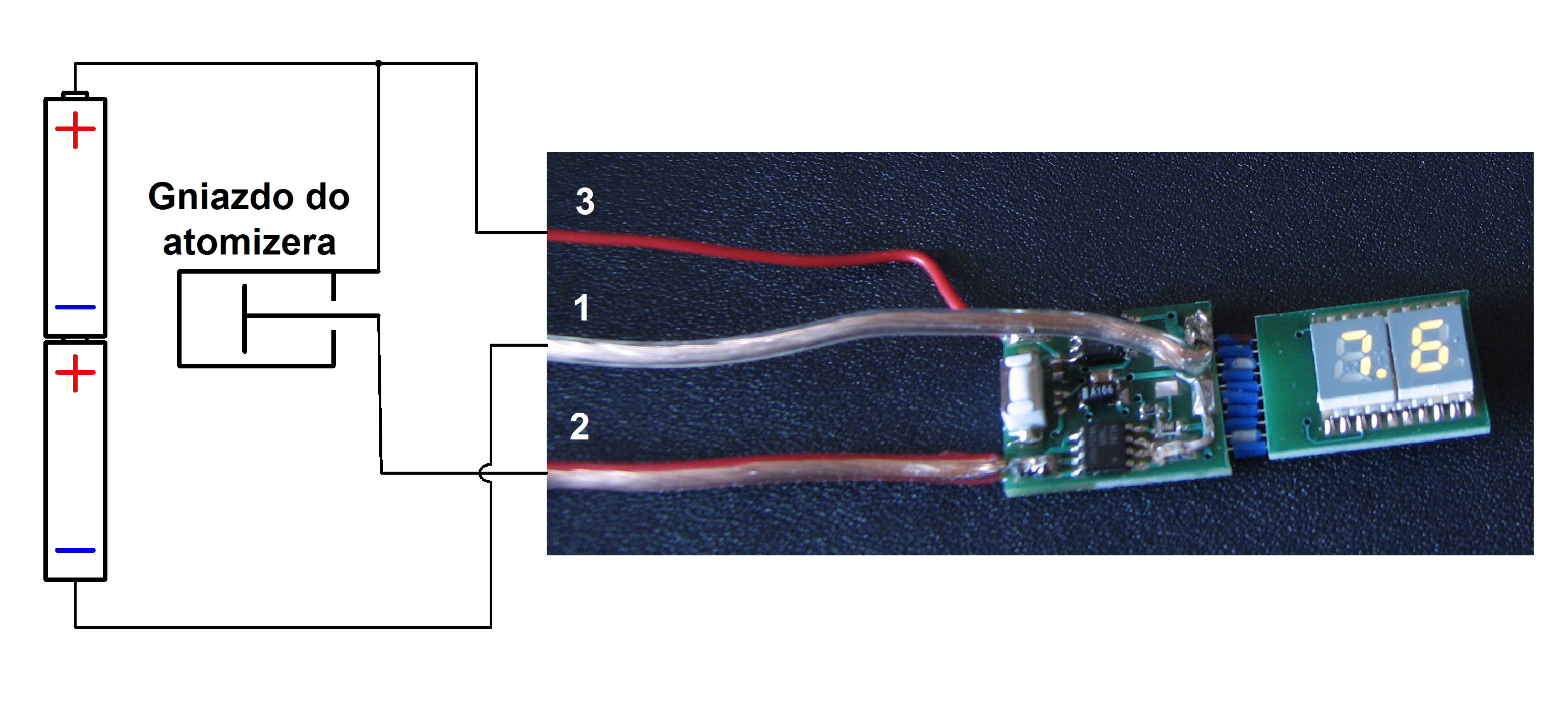2 podłączamy do środkowego styku gniazda dla atomizera.