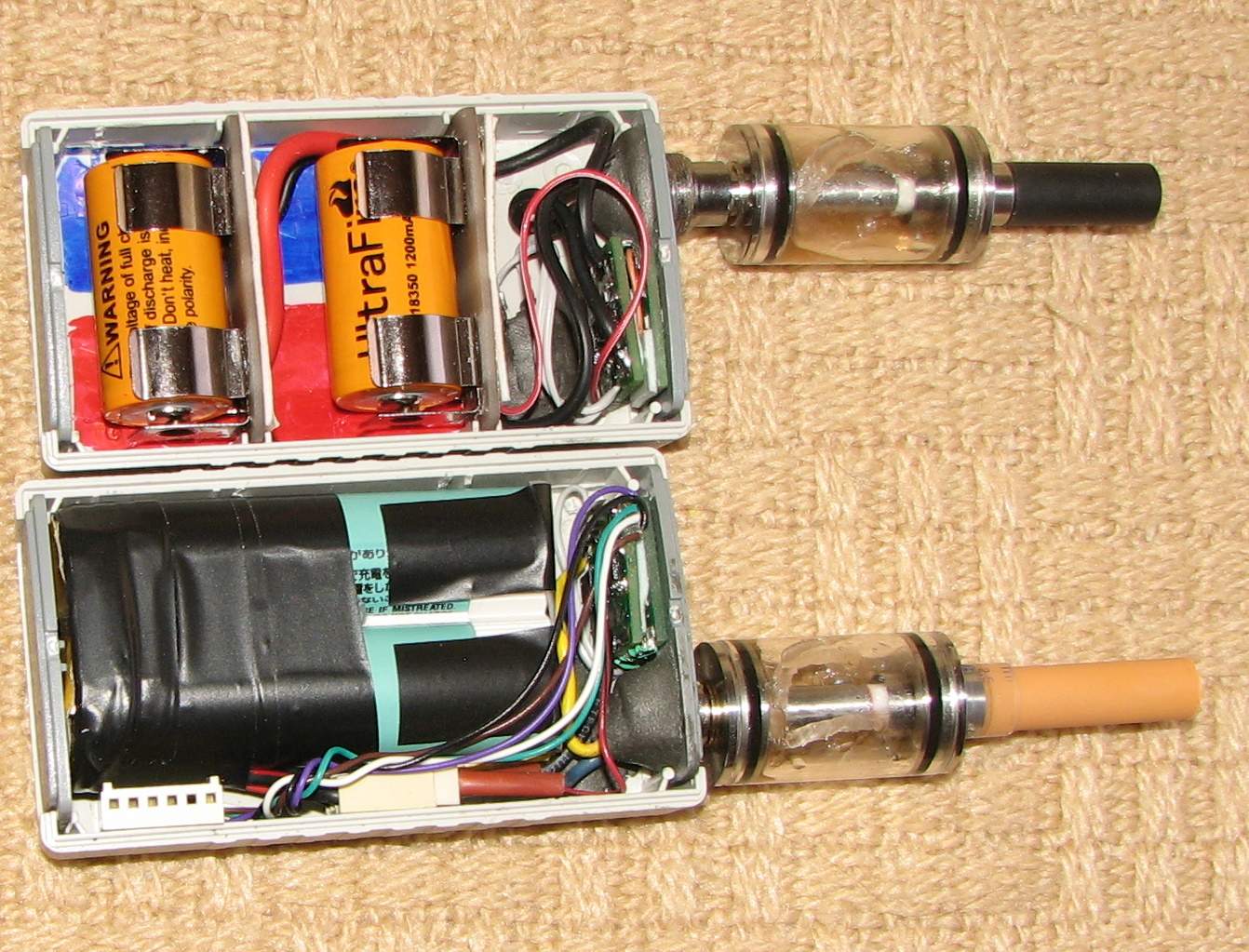 Dwa układy. Jeden napędzany przez 2×18350, drugi przez 2×18650 Panasonic z baterii laptopowej.