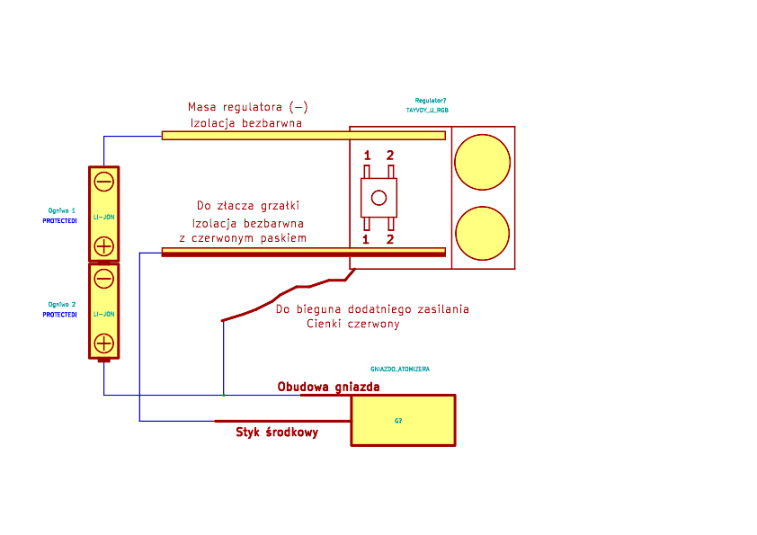Do obudowy gniazda dla atomizera podłączamy dodatni biegun zasilania. Poniżej rysunek poglądowy