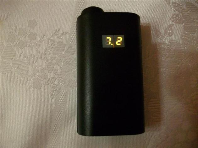 • Dwa naciśnięcia pod rząd – układ budzi się i wchodzi w tryb podgrzewania płynu. Na wyświetlaczu pojawiają się litery „PH”  (Pre Heating). Praca z około 35% nastawionej mocy. Po około czterech sekundach układ usypia. Można w każdej chwili przerwać podgrzewanie naciskając przycisk i przejść do dymienia z nastawionym wcześniej napięciem.