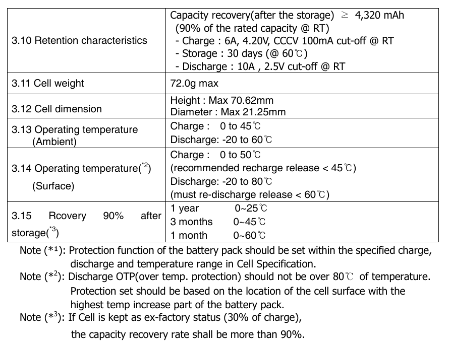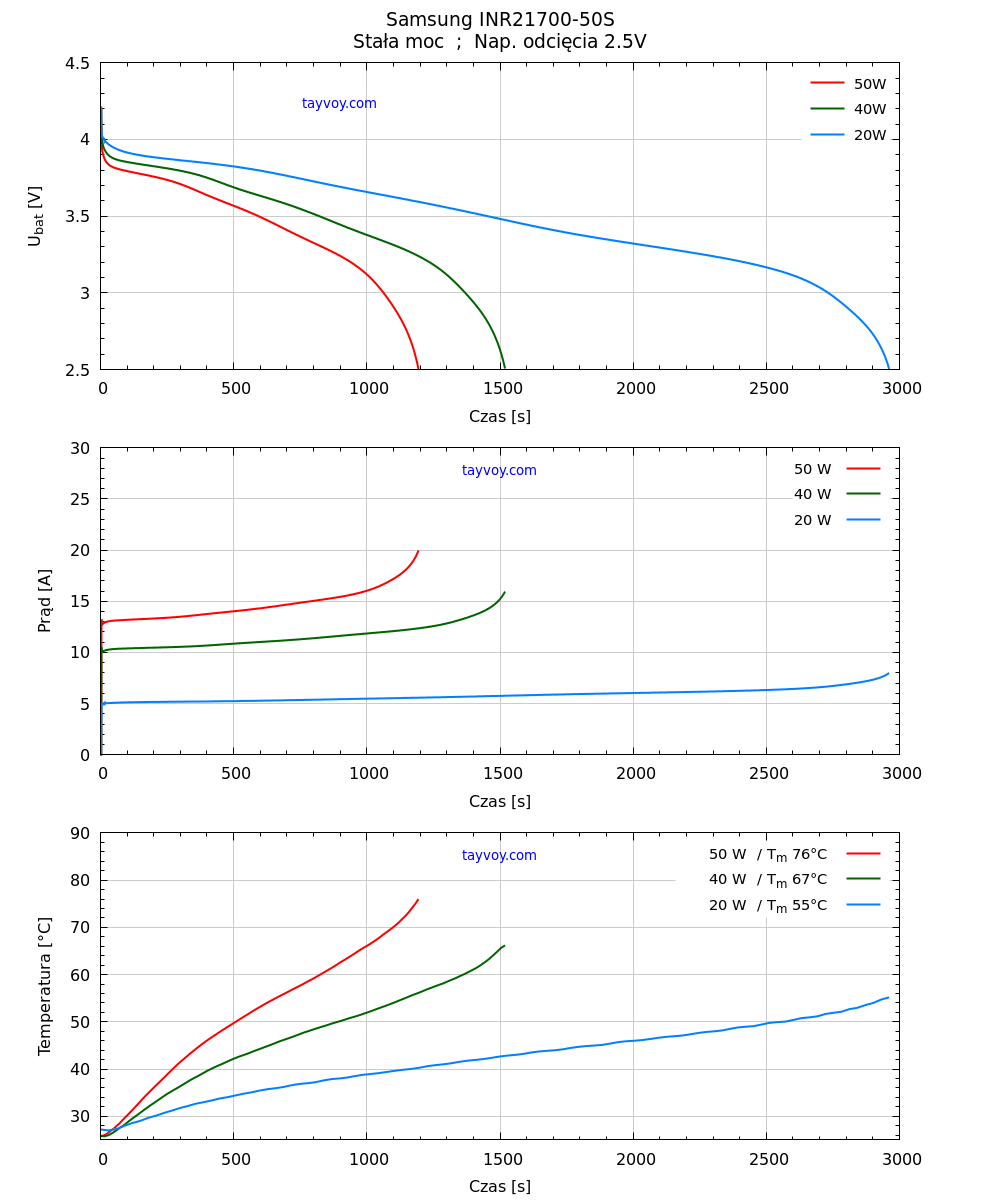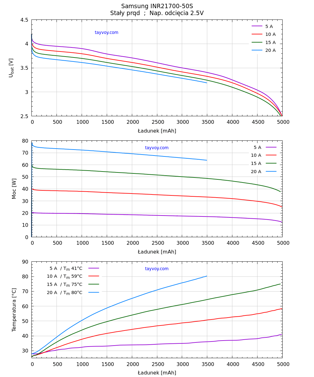 Przy prądzie 15A ogniwo osiągnęło temperaturę maksymalną Tm=75°C i można uznać, że maksymalny stały prąd naprawdę ciągłego rozładowania, w obudowie zamkniętej bez wymuszonego chłodzenia, wynosi 15A.
