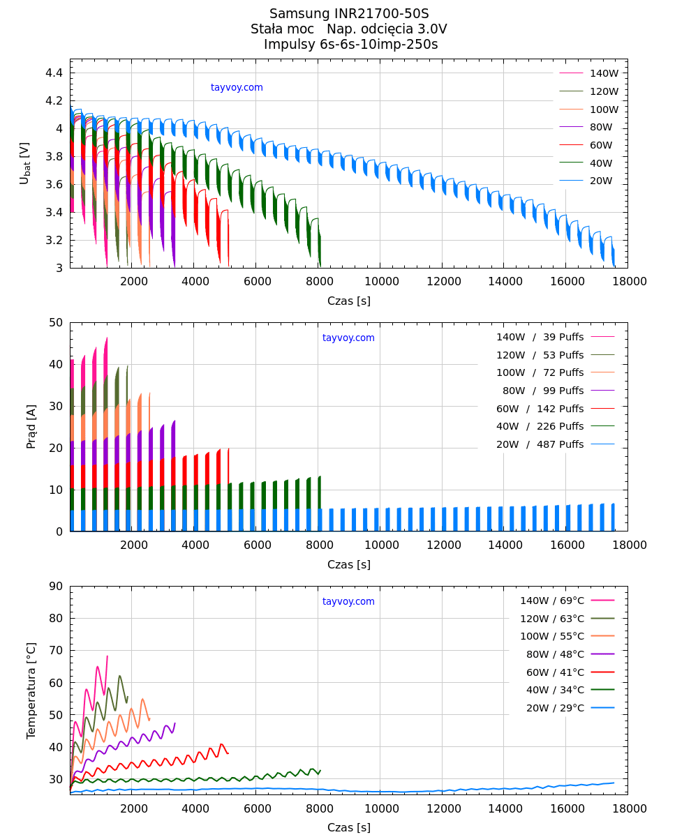 | P [W] | Puffs | Q [mAh] | E [Wh] | Im [A] | Tm [°C] |