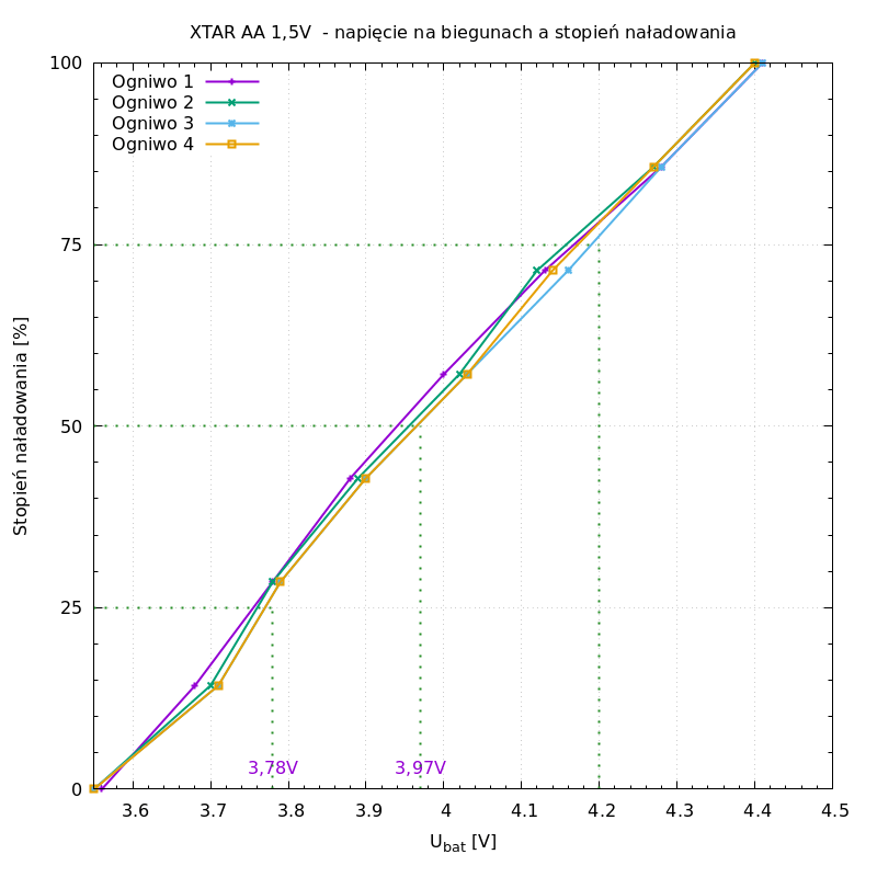 Najpierw określę zależność napięcia na biegunach ogniwa XTAR AA 1,5V.